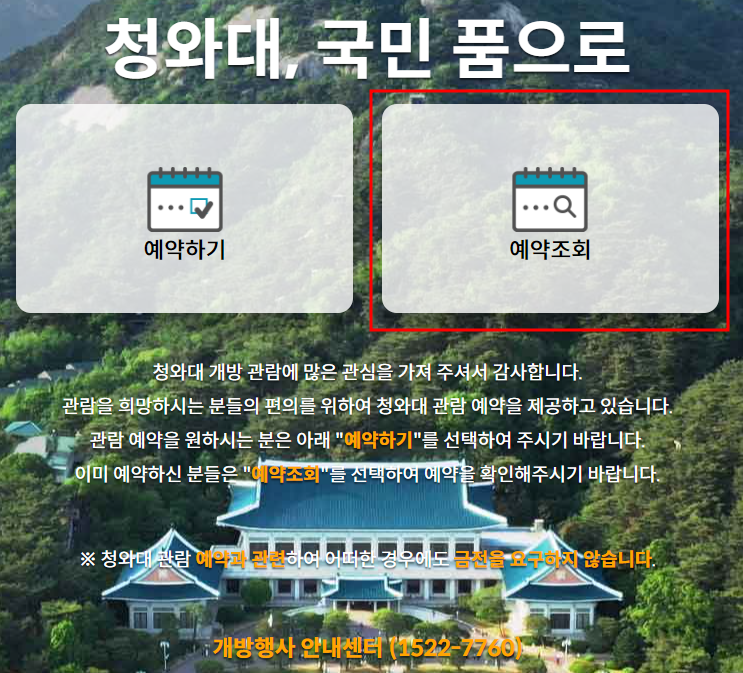 청와대 관람 예약취소