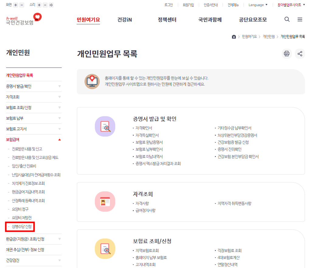 ▶ 국민건강보험 홈페이지에 접속하신 후 '민원여기요'을 클릭하시면 됩니다.
