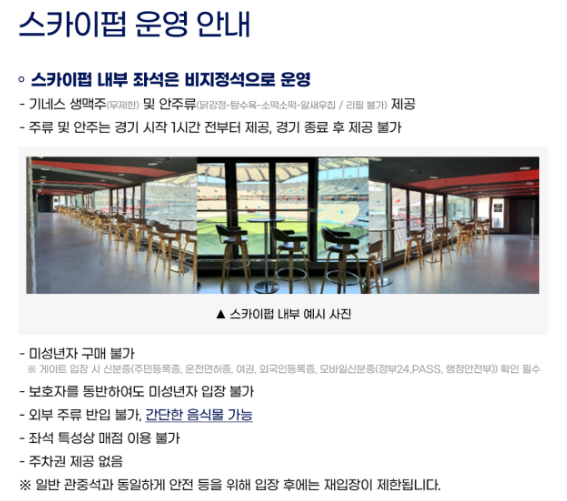 ▶ 스카이펍은 티켓 좌석과 함께 기네스 생맥주 및 안주가 무한제공됩니다.