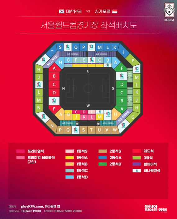 대한민국 VS 싱가포르 좌석배치